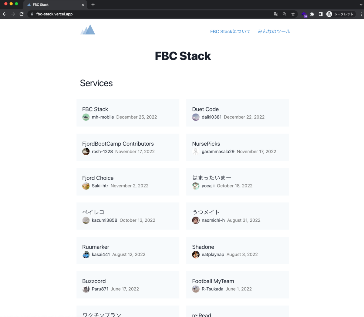 FBC Stackに掲載している自作サービス