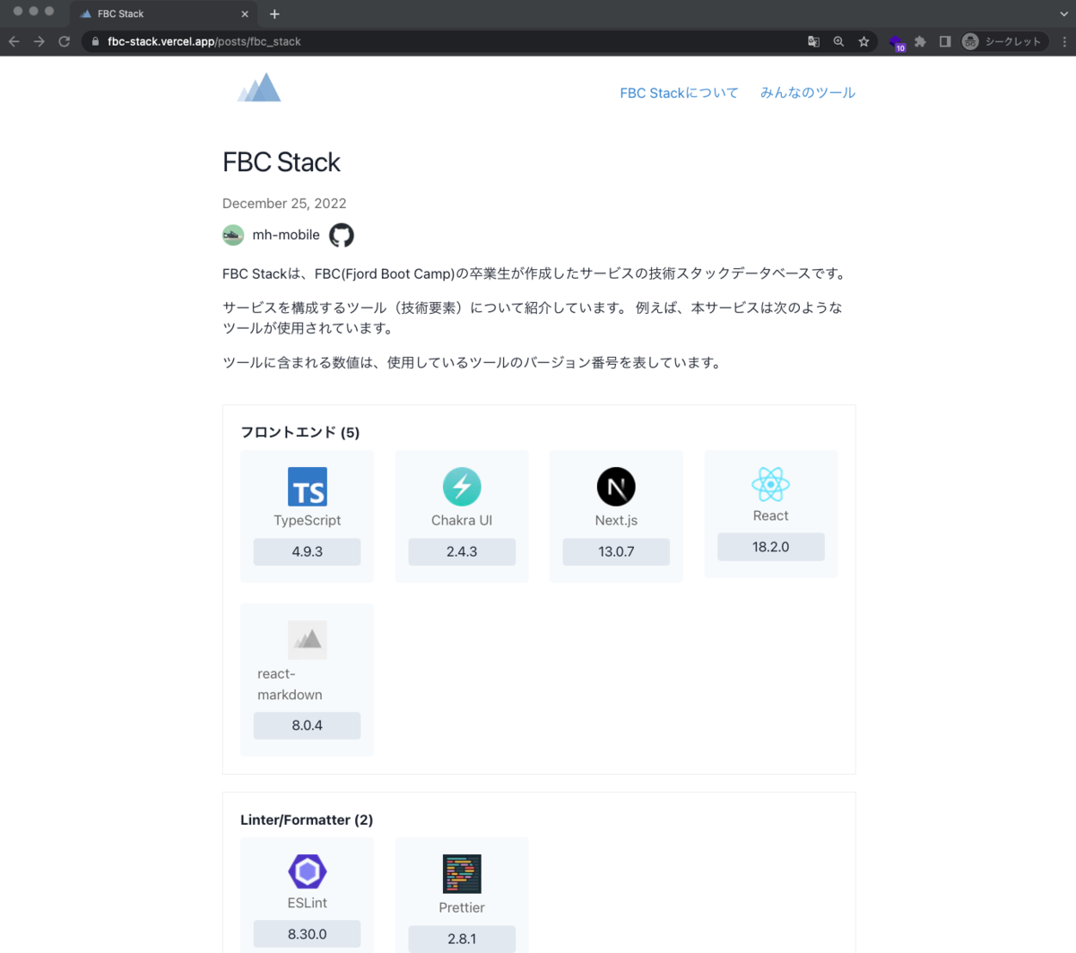 今回は FBCの卒業生が作成したサービスの技術スタックデータベースのサービスをリリースしましたので、そのサービスのご紹介になります。 特に卒業制作のサービスというわけではなく、ちょうど解決したいFBC関連のサービスがあったので、 このアドベントカレンダーをリリース日に設定し、開発を行いました。